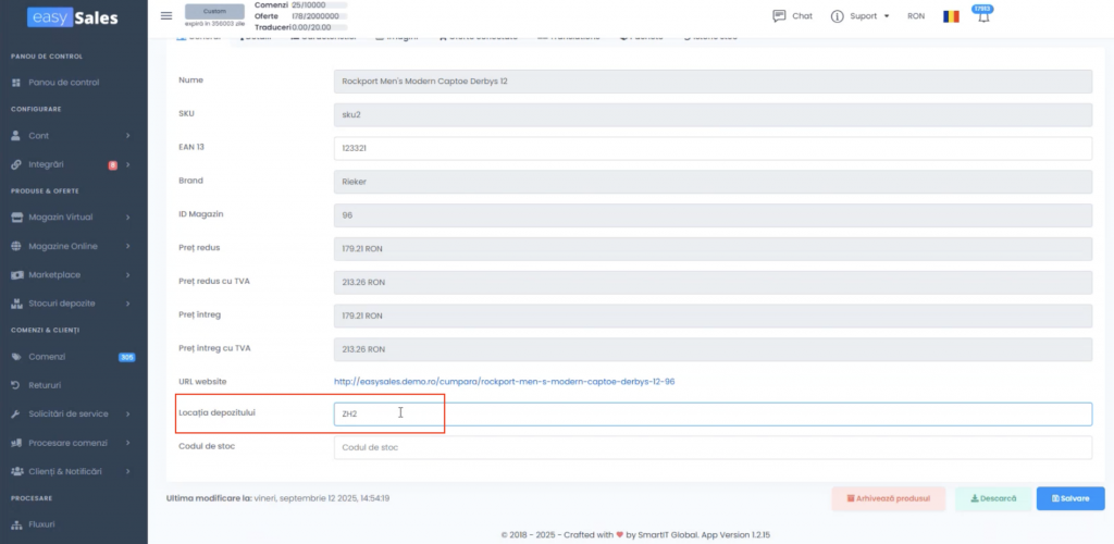 Date precise: importurile extinse, locațiile din depozit și categoriile gestionate corect, te ajută să îți menții catalogul de produse ordonat.