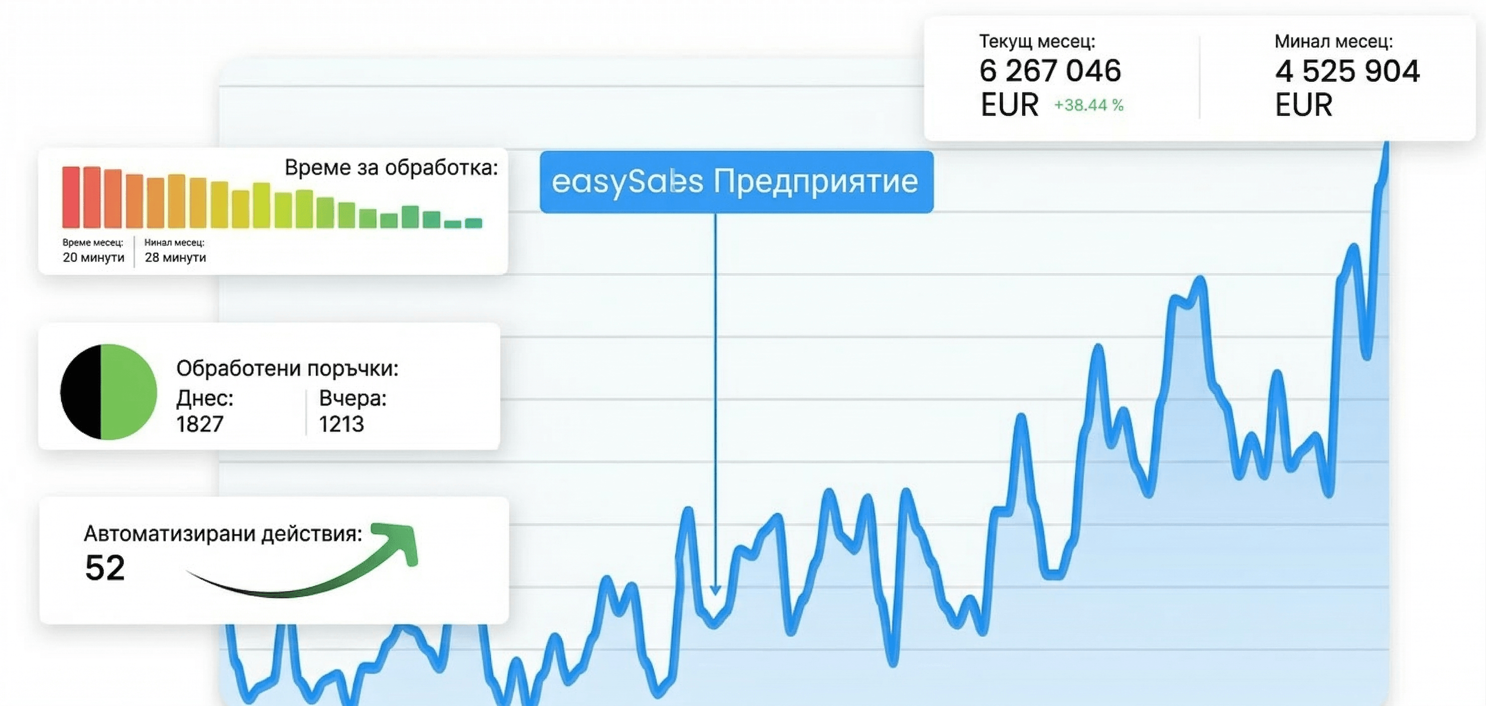 Клиентите на easySales Enterprise оптимизираха работните си процеси, обработвайки поръчки с 30% по-бързо, намалявайки забавянията и повишавайки удовлетвореността на клиентите.